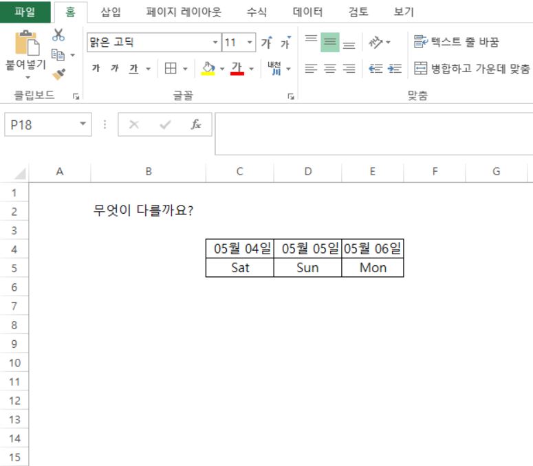 | [엑셀 꼼수] 23. Text 함수로 요일 표시하기 (0) | 2019.05.07 |