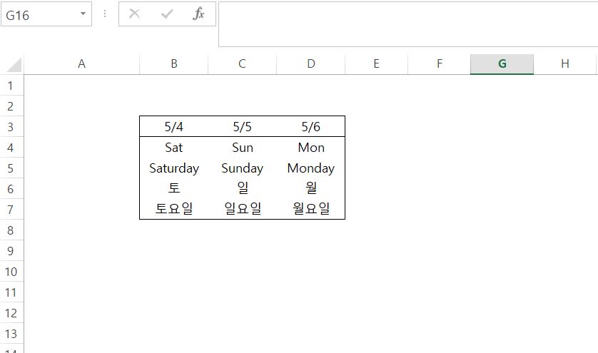 자 5월의 황금연휴였던 5/4~5/6 까지의 요일을 표기한 자료이다.