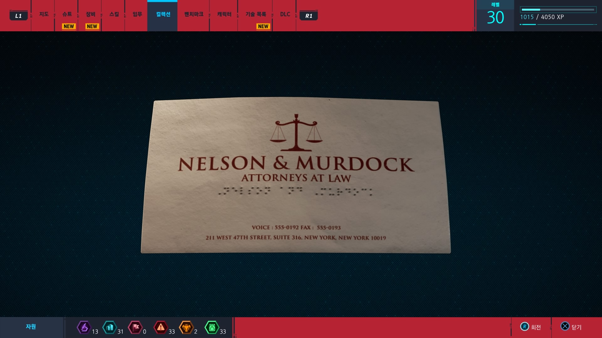 아래 이미지의 명함은 아시는 분은 아시겠지만 또 다른 히어로 데어데블의 명함이다.