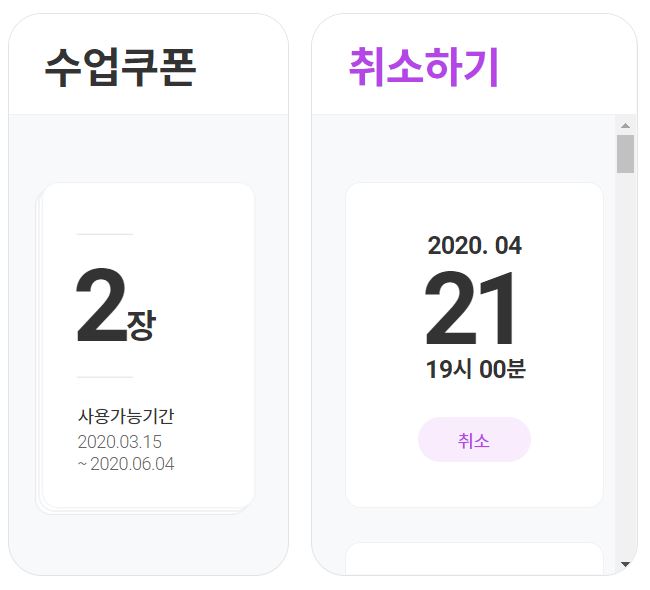 나 같은 경우 어떻게 취소하는지 정확히 몰라 좌측에 있는 수업쿠폰을 다음날로 지정했고