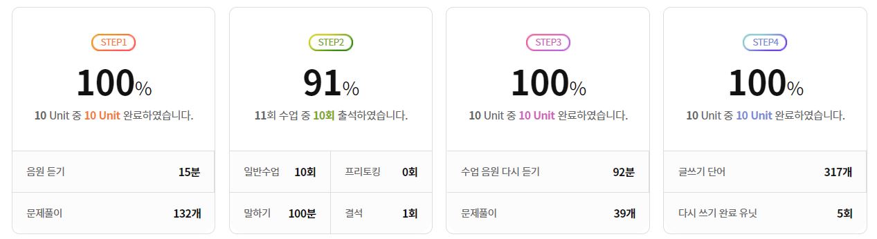 일단 전화영어를 빨리 시작하지 않았던 점이 아쉽다.