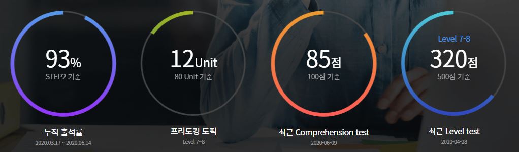 최초 시작은 정규회화 5-6 레벨로 시작했었는데 4/28 두번째 레벨테스트에서 7-8 레벨이 나온 이후에는