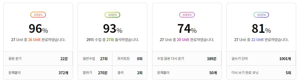 예전 5-6 레벨을 진행할 때보다는 덜 매끄러운 느낌이 들긴하지만 그래도 실력이 향상되고 있다는 느낌은 받고 있다.